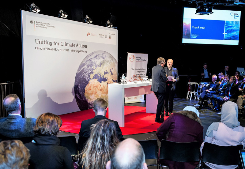 In the COP 23 setting, DENA (the German Energy Agency) kicked off its “Start Up Energy Transition Award 2018” competition in Bonn. This looks for innovators with business solutions for the energy transition and climate protection. To introduce into the topic, two start-ups were invited to present themselves: SolShare from Bangladesh, winner of the 2017 DENA competition, showed its progress in building micro grids from individual solar home systems. Easy Smart Grid from Germany presented its newly developed SDSO box to implement Smart Decentral Self Optimisation, its solution for cheaper and cleaner energy.